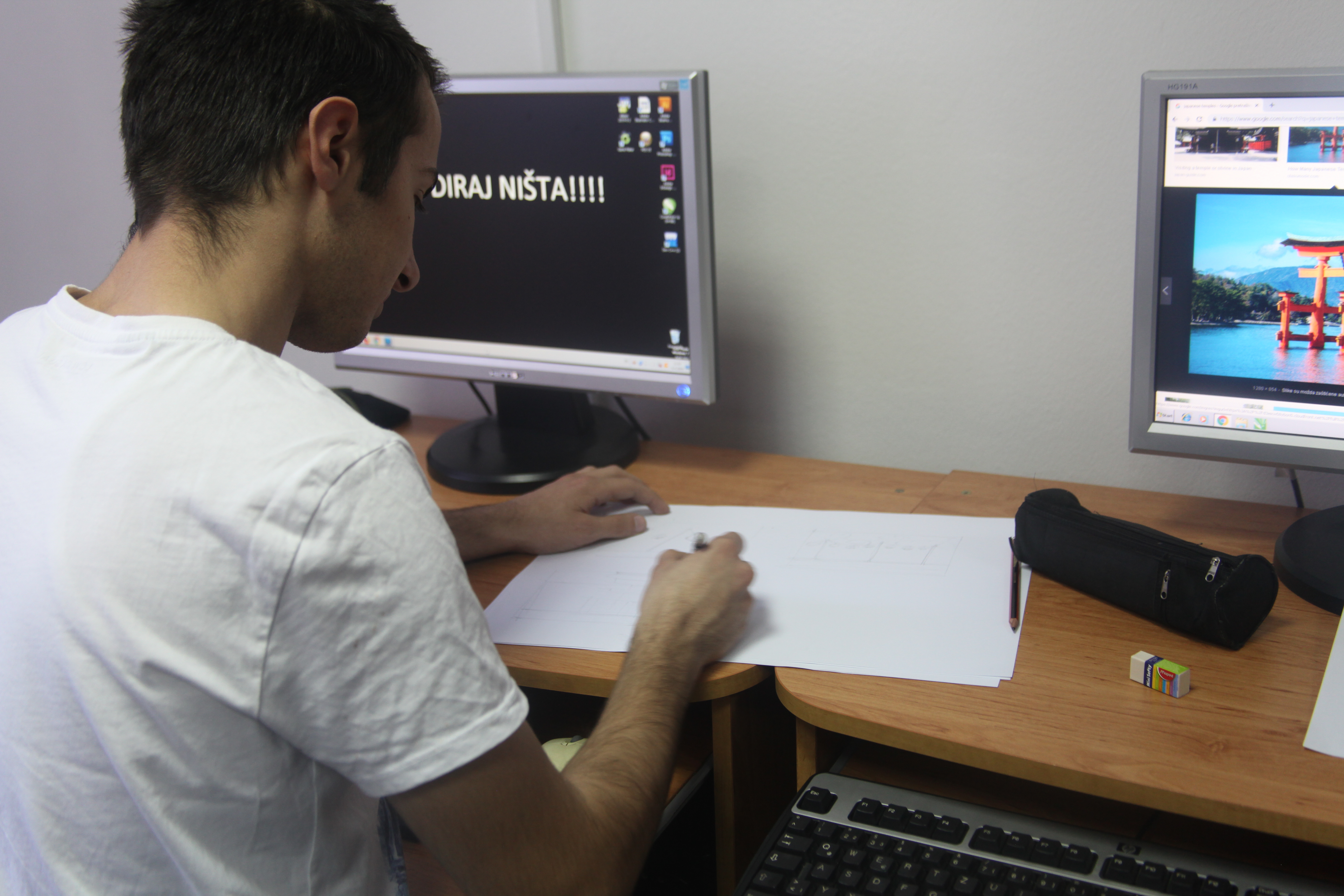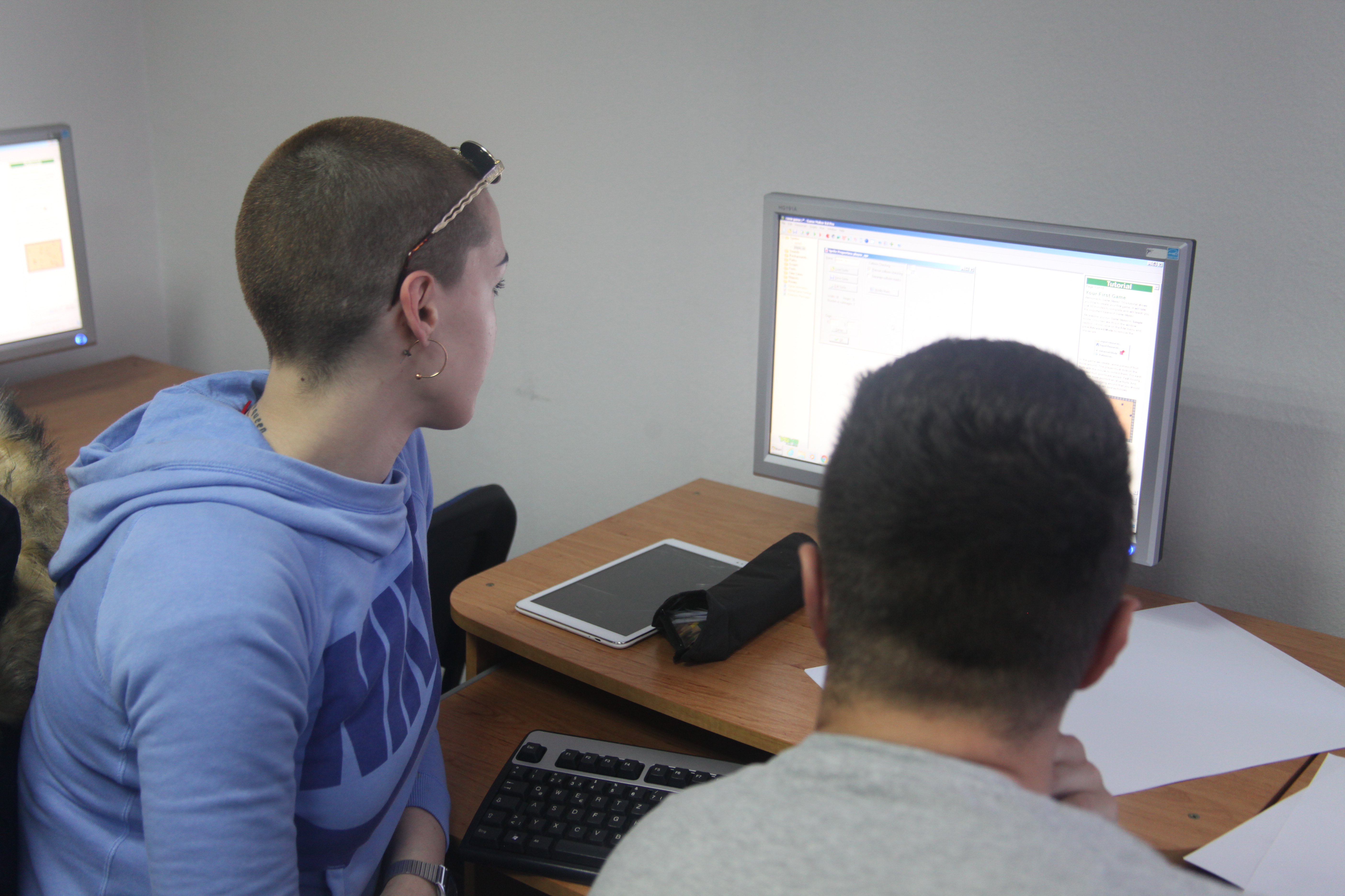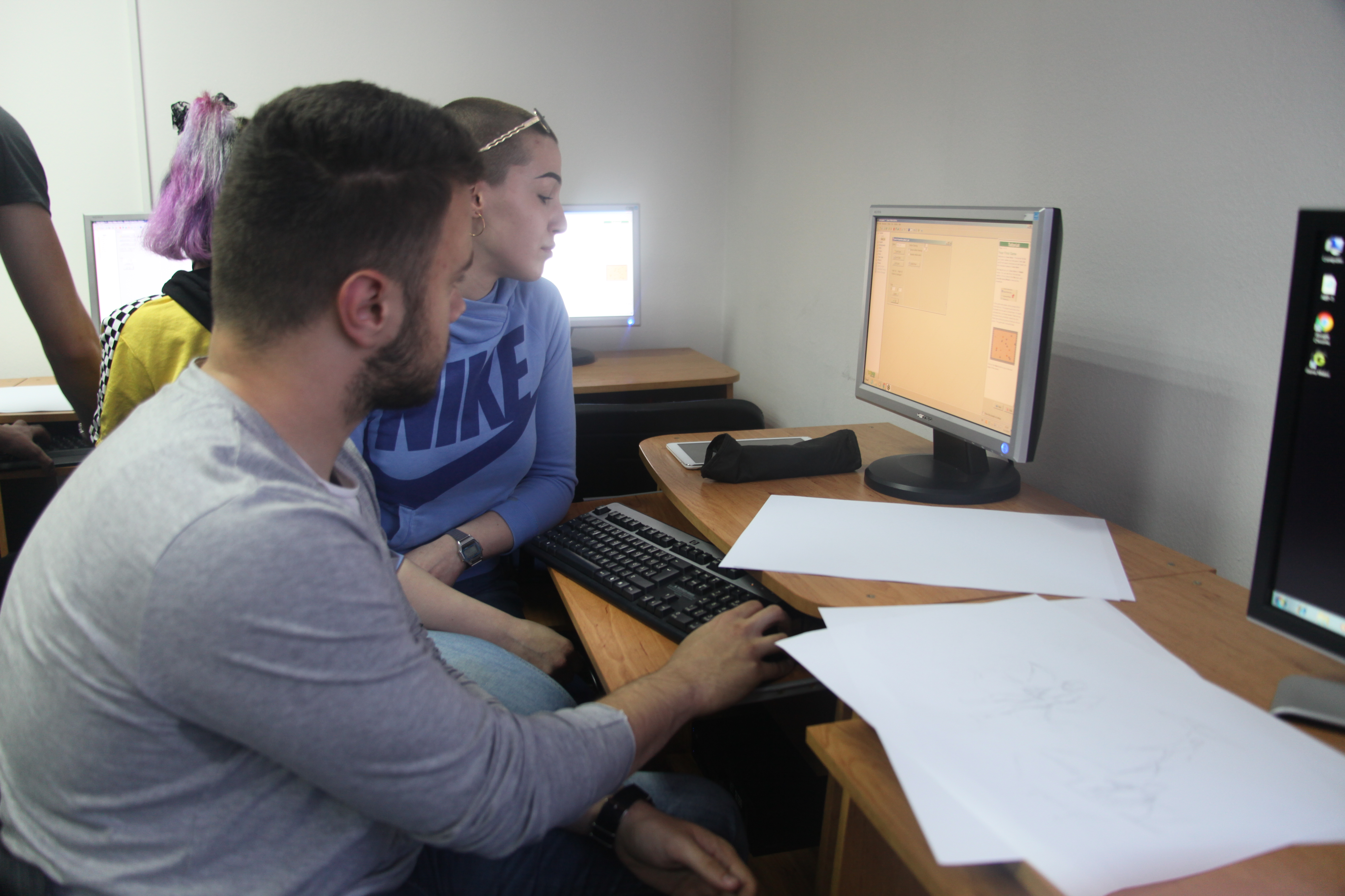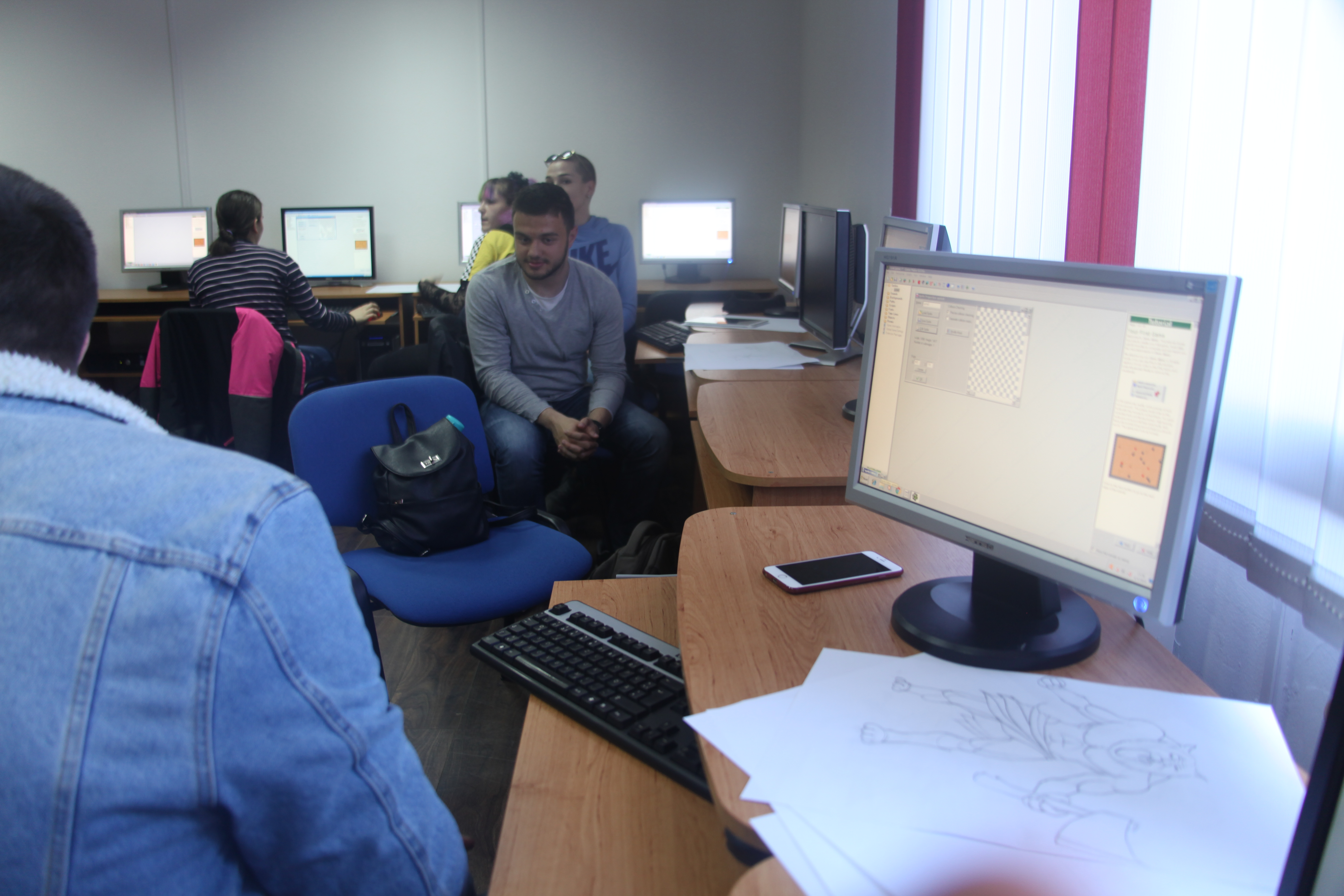 Drugi dio radionice usmjeren je prema praktičnom dijelu.  Nakon što su osmislili i nacrtali lika i pozadinu, uz pomoć predavača, kreirali su video igricu, programirali je i pokrenuli.