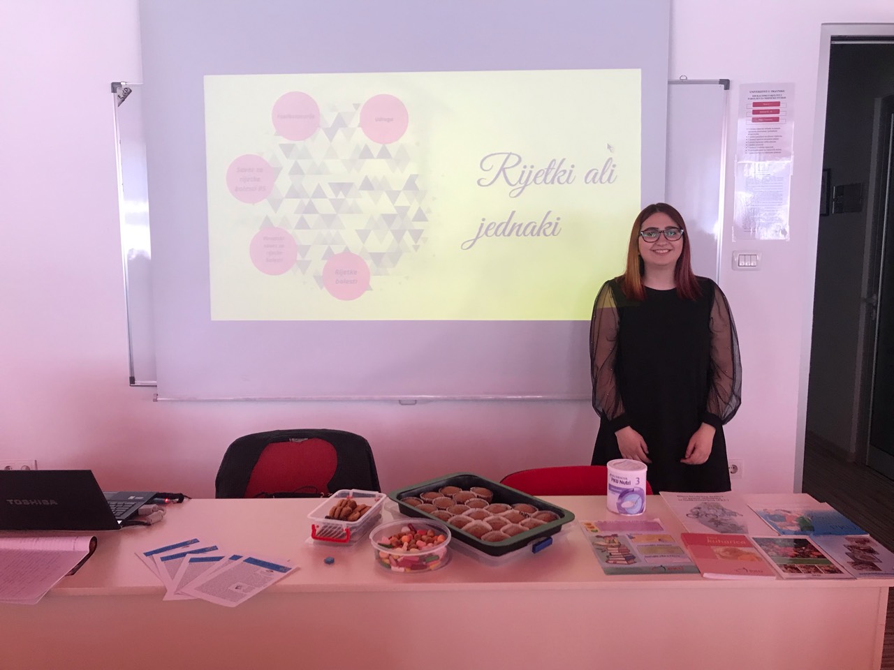 Predavanje se nastavilo upoznavanjem sa fenilketonurijom i pričom o anegdotama sa raznih druženja na kojima je naša studentica učestvovala. Ivana se dotakla i činjenice da u Bosni i Hercegovini ne postoji udruga za pomoć porodicama oboljelima od fenilketonurije, a da je ona zaista potrebna.