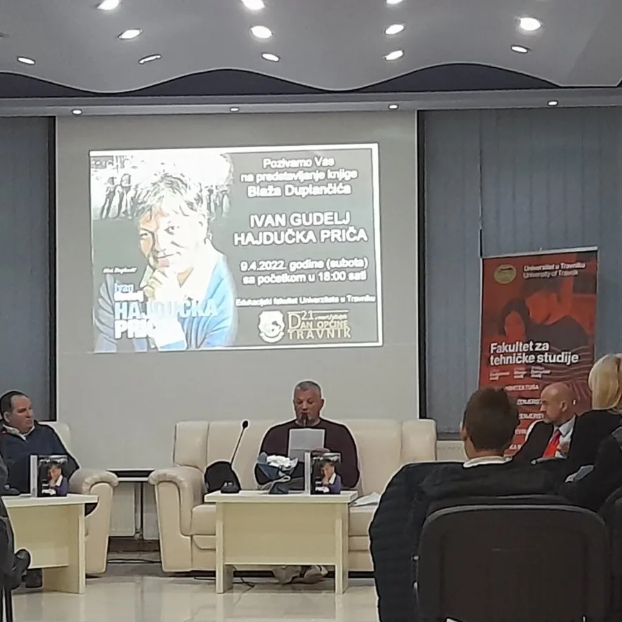 Večeras je u Konferencijskoj sali Edukacijskog fakulteta Univerziteta u Travniku održana promocija knjige „Ivan Gudelj – Hajdučka priča” autora Blaža Duplančića. Riječ je o biografskoj knjizi o legendarnom fudbaleru splitskog Hajduka i reprezentativcu bivše Jugoslavije. Priča Ivana Gudelja nije tipična sportska biografija već životni put čovjeka kome su u jednom trenutku sva fudbalska vrata otvorena, a već u sljedećem je zbog bolesti bio primoran napustiti karijeru. Iako je izgubio mogućnost svjetske karijere, nikada nije izgubio snagu i srčanost koju je sa fudbalskih terena prenio u svakodnevni život i borbu protiv bolesti.